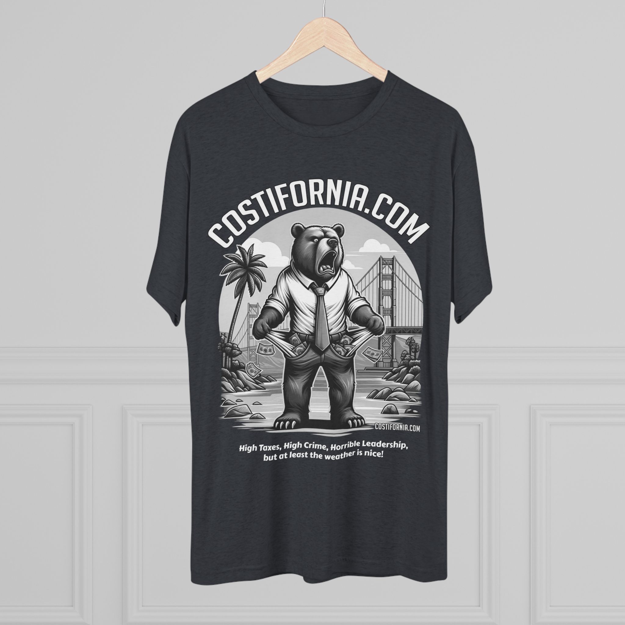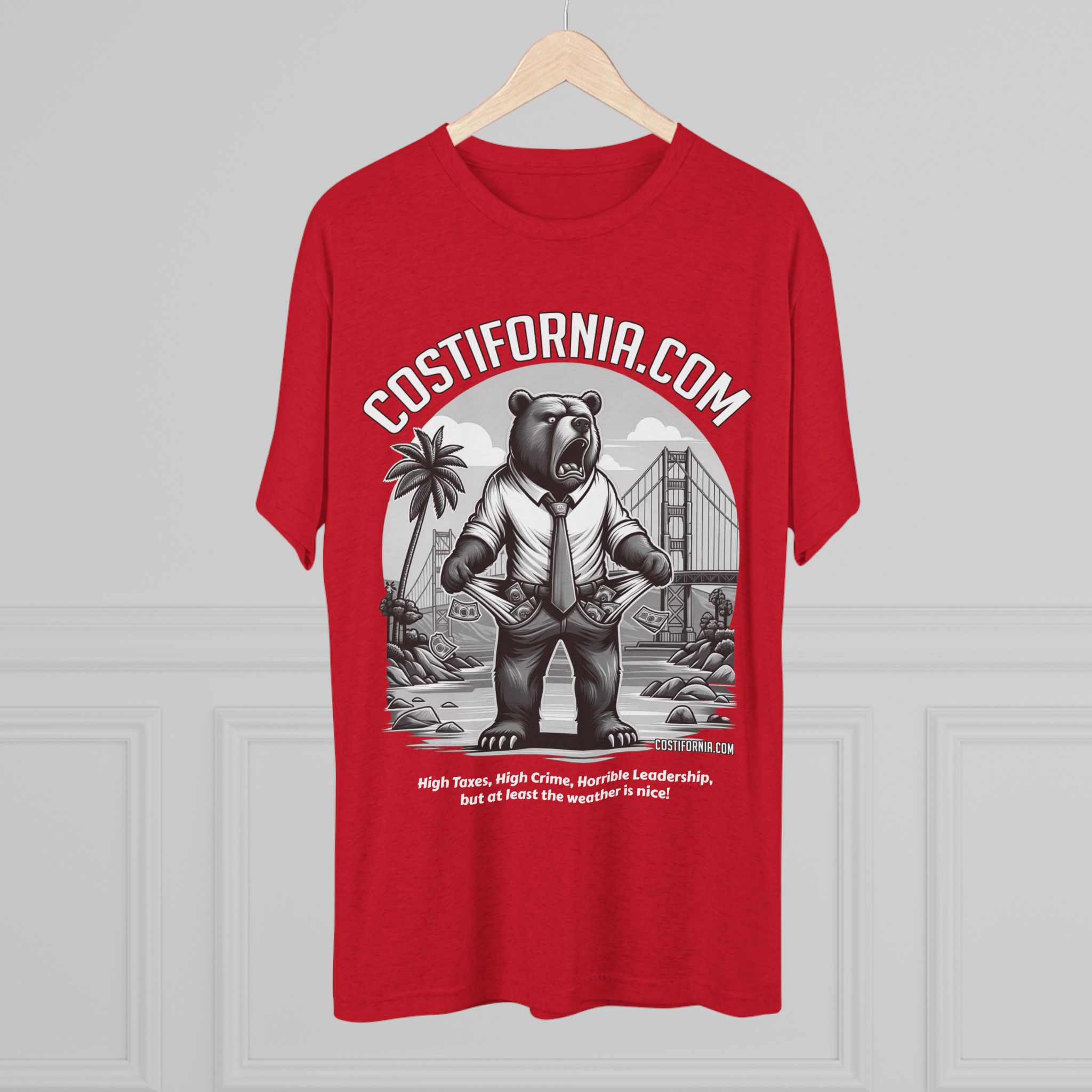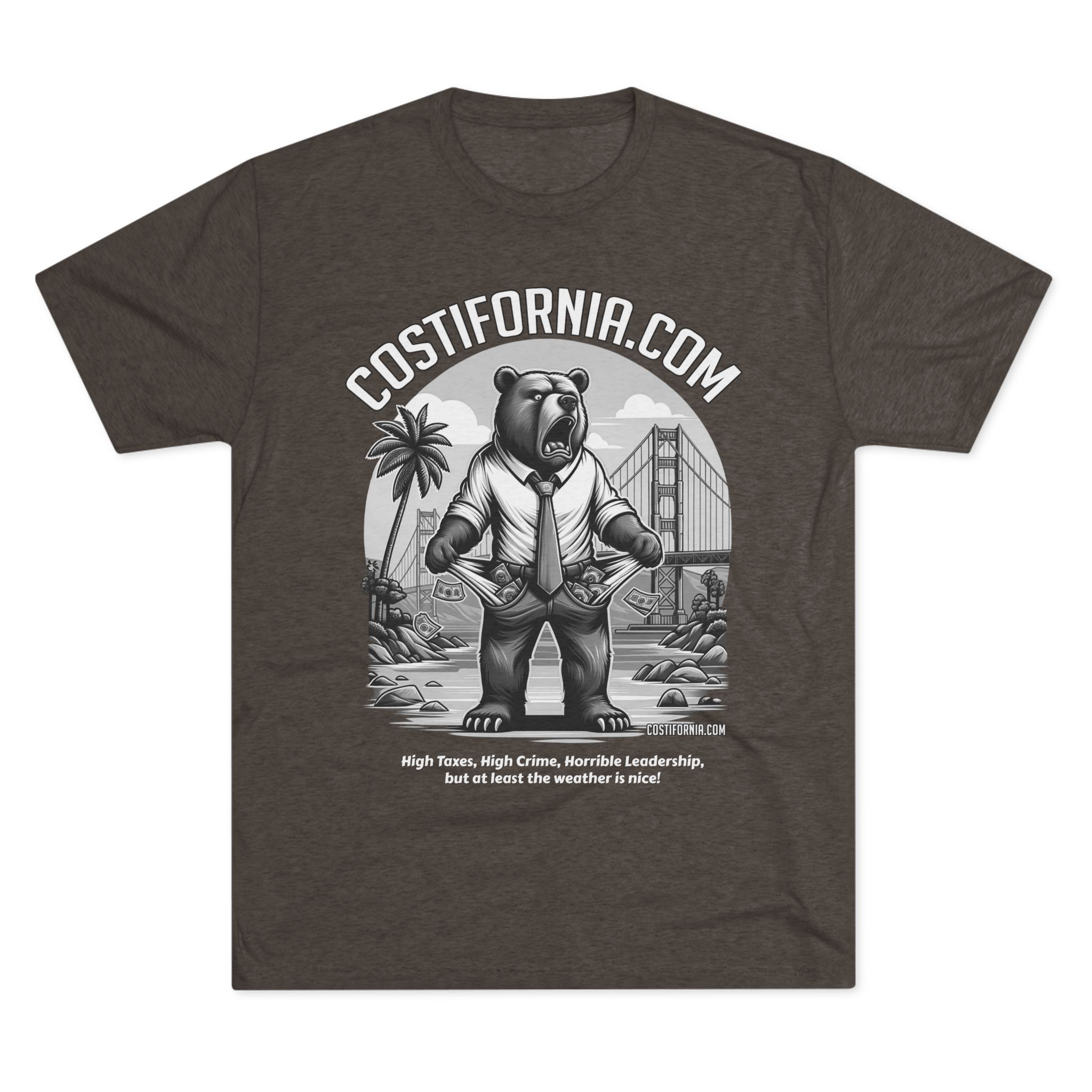 This T-Shirt features the Costifornia Brand Expensive Living Costs in California design, giving off a stylish and trendy vibe. Perfect for Californians or those familiar with the high living costs in the state. Ideal for casual wear, showing off state pride, or as a gift for someone from California. Relevant for holidays like California Day or as a statement piece for those affected by expensive living.