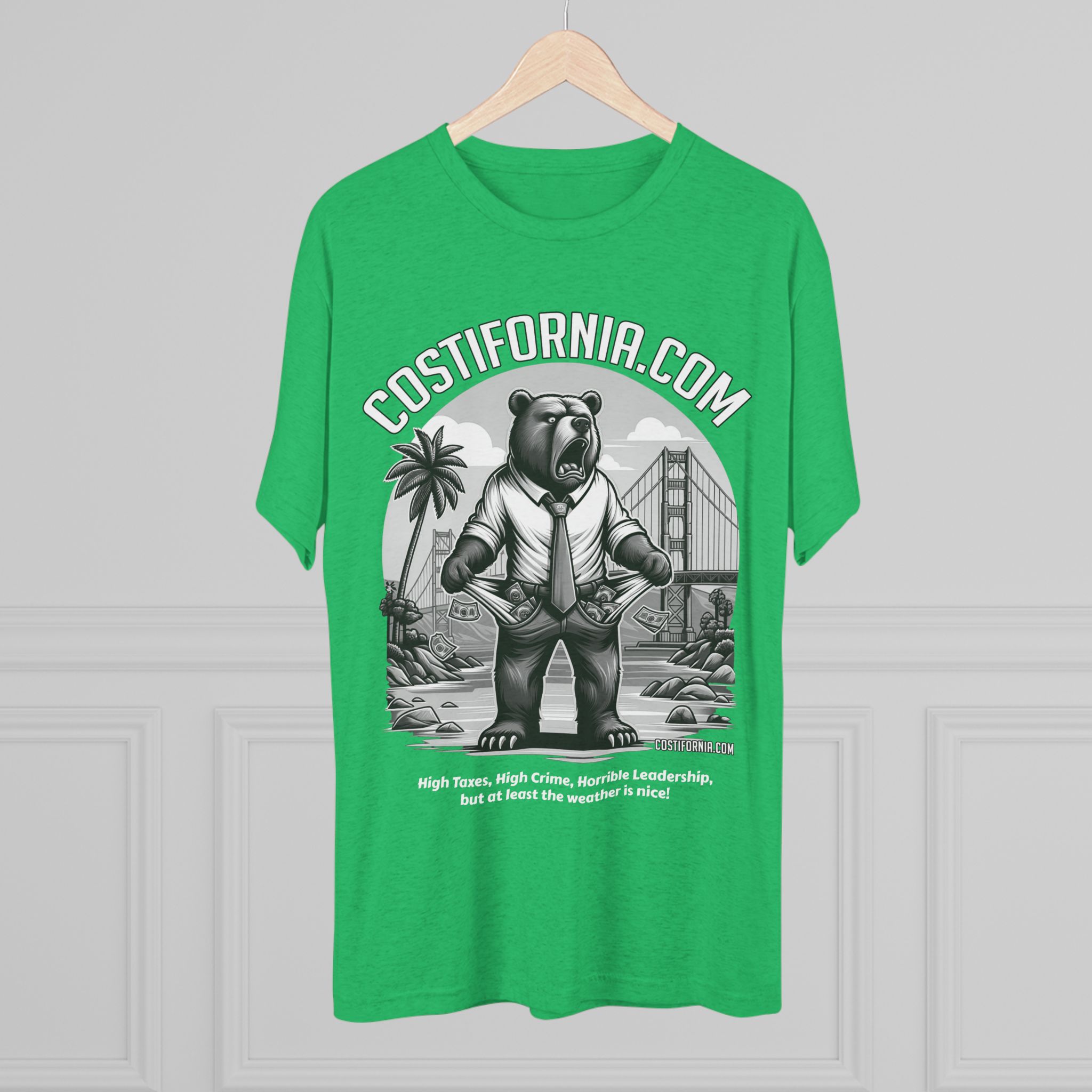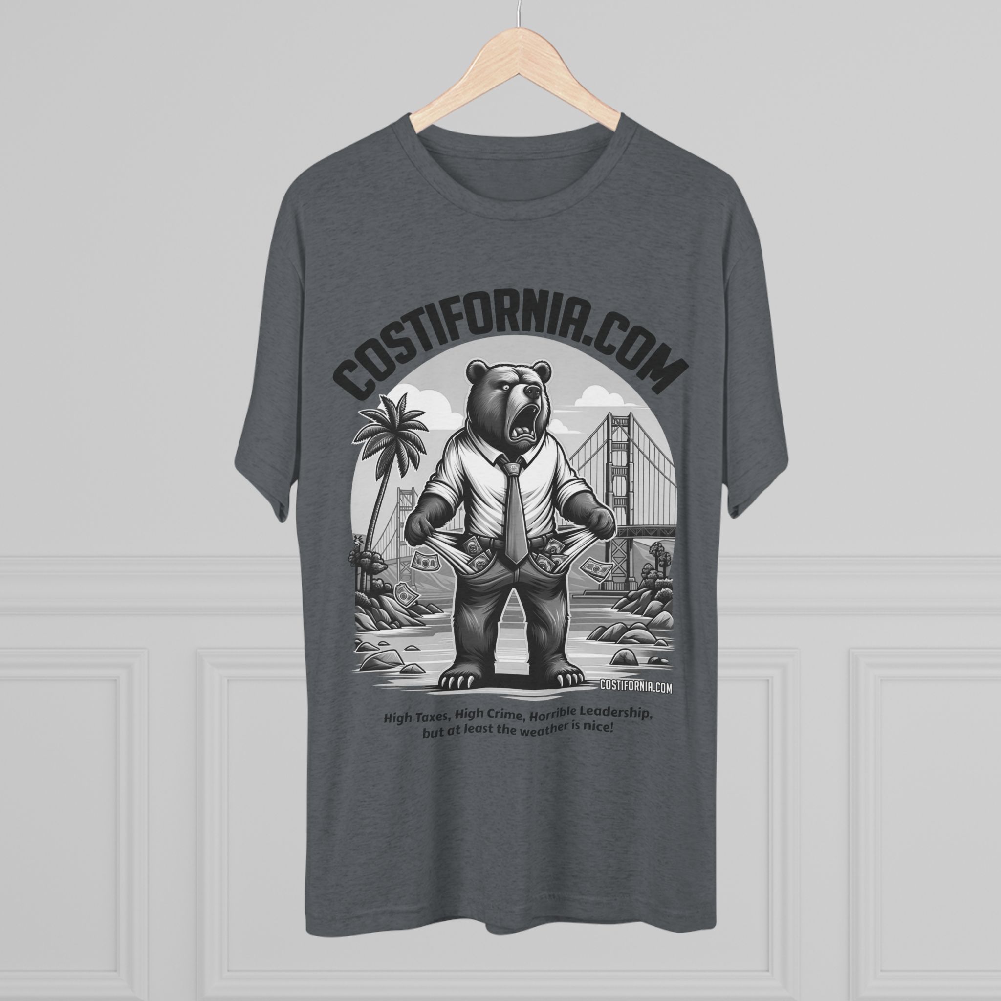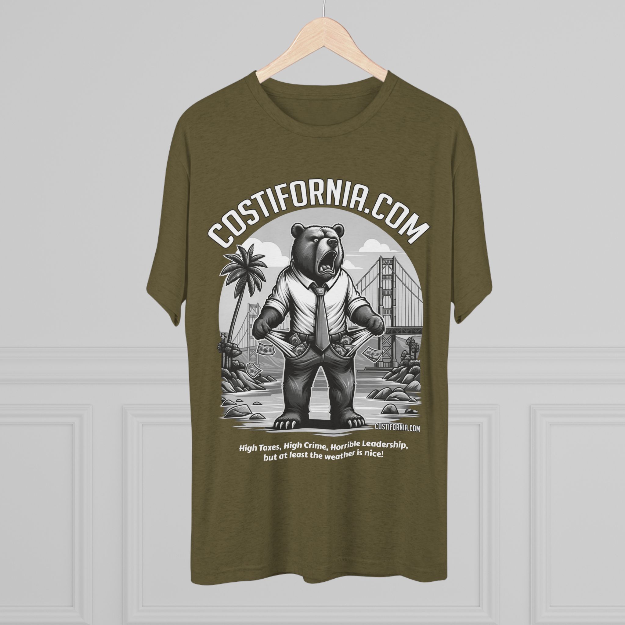 This T-Shirt features the Costifornia Brand Expensive Living Costs in California design, giving off a stylish and trendy vibe. Perfect for Californians or those familiar with the high living costs in the state. Ideal for casual wear, showing off state pride, or as a gift for someone from California. Relevant for holidays like California Day or as a statement piece for those affected by expensive living.